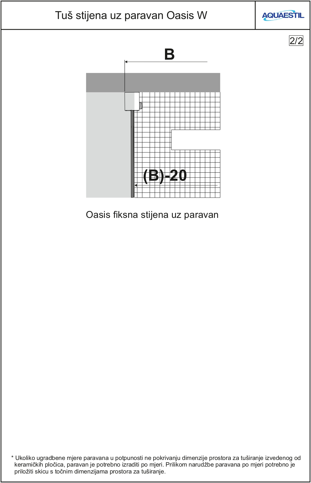• Falls der Wandschirm auf Fliesen und nicht auf der Dusche aufgebaut wird, muss bei der Bestellung ein Entwurf mit den genauen Abmessungen.