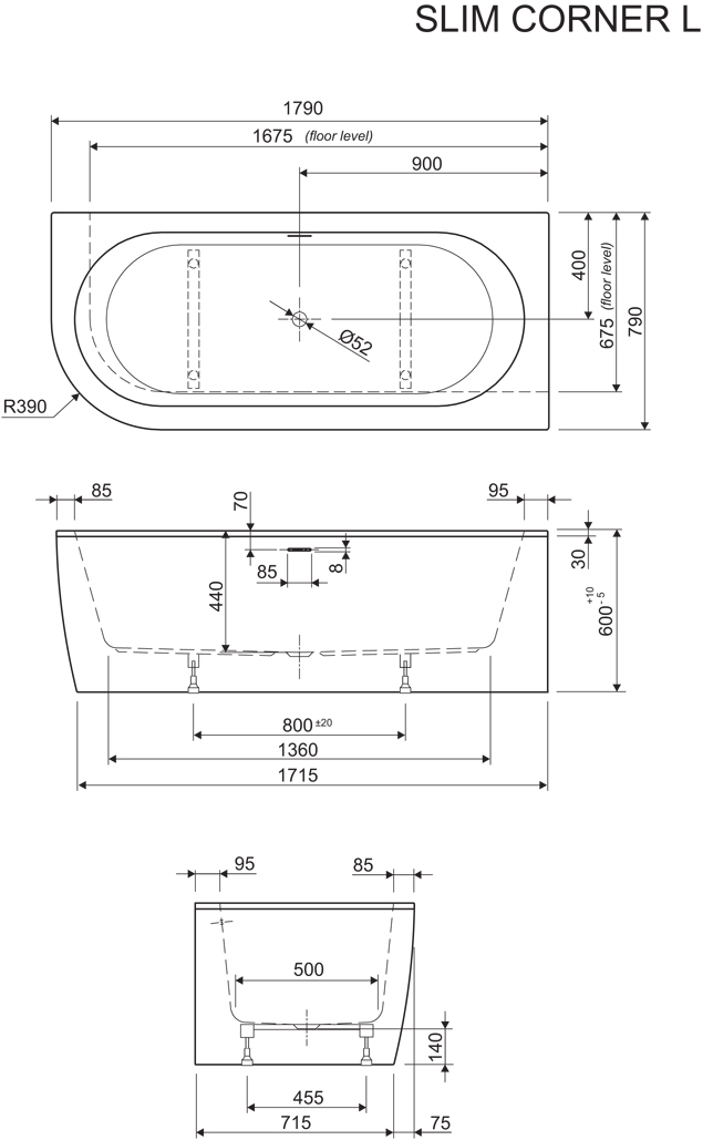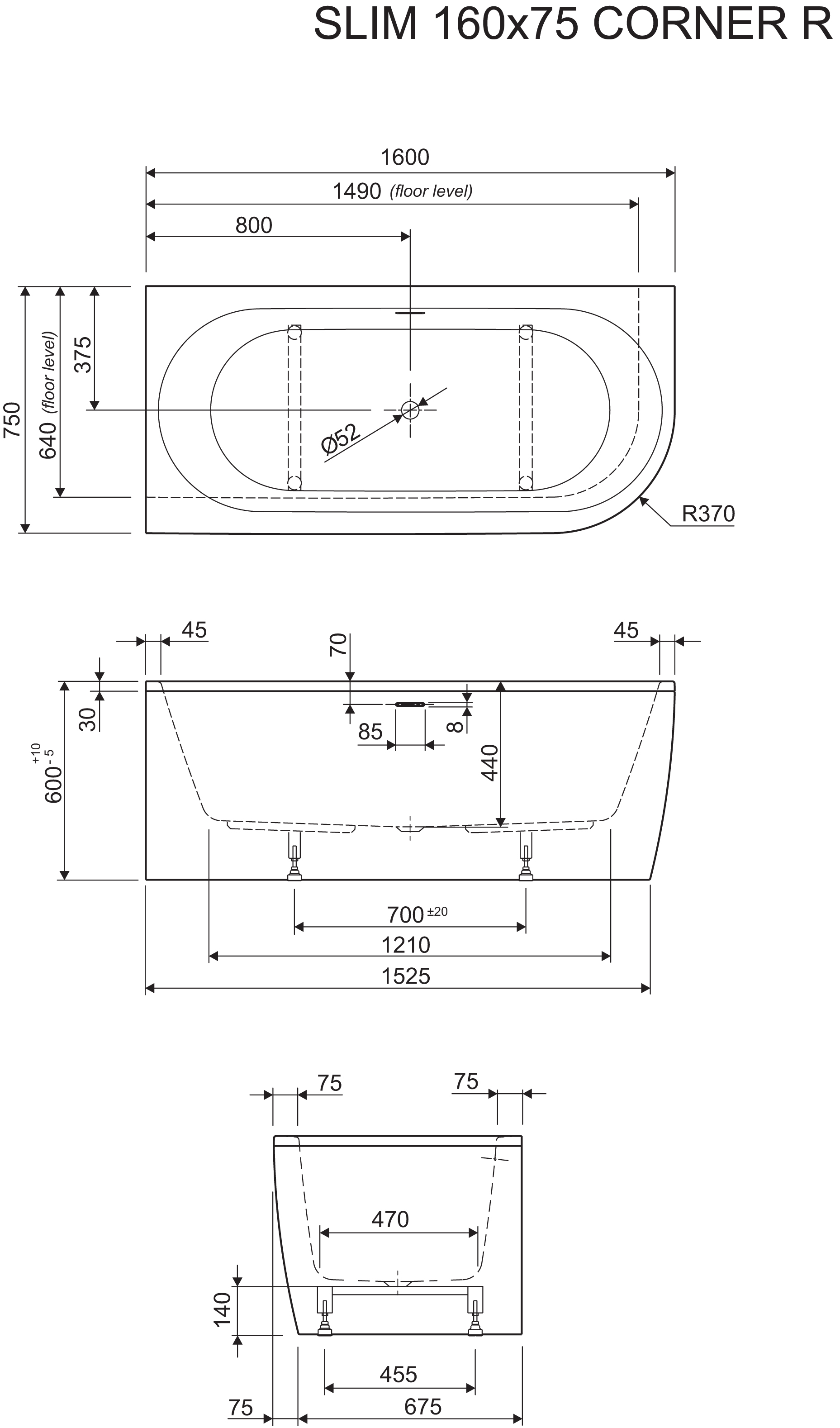 Elegant bathtub Slim Corner is characterized by its oval shape and slot overflow. It is delivered with factory-fitted and fixed panel, overflow-waste system with click-clack valve and flexible hose for drain connection. Installation is very simple; it is enough to connect the hose to the drain, fix the bathtub to the wall, fill the water in and you are set to go!