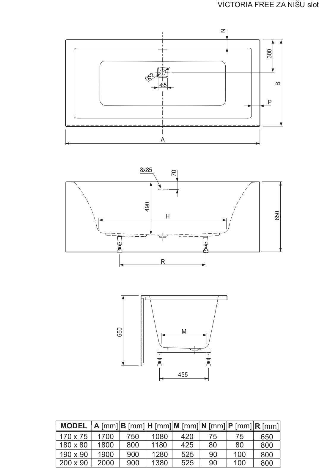 Victoria Free is a series of rectangular bathtubs whose main characteristics are elegant design, comfort and simple assembly. These bathtubs are made of quality cast sanitary acrylic that is pleasant to the touch, resistant, naturally anti-slip and easy to maintain. Victoria Free bathtubs come with factory-mounted frame and an overflow-outflow set with “slot” overflow and “click-clack” siphon valve. All elements are factory assembled, and the bathtub is delivered ready for installation in your bathroom.