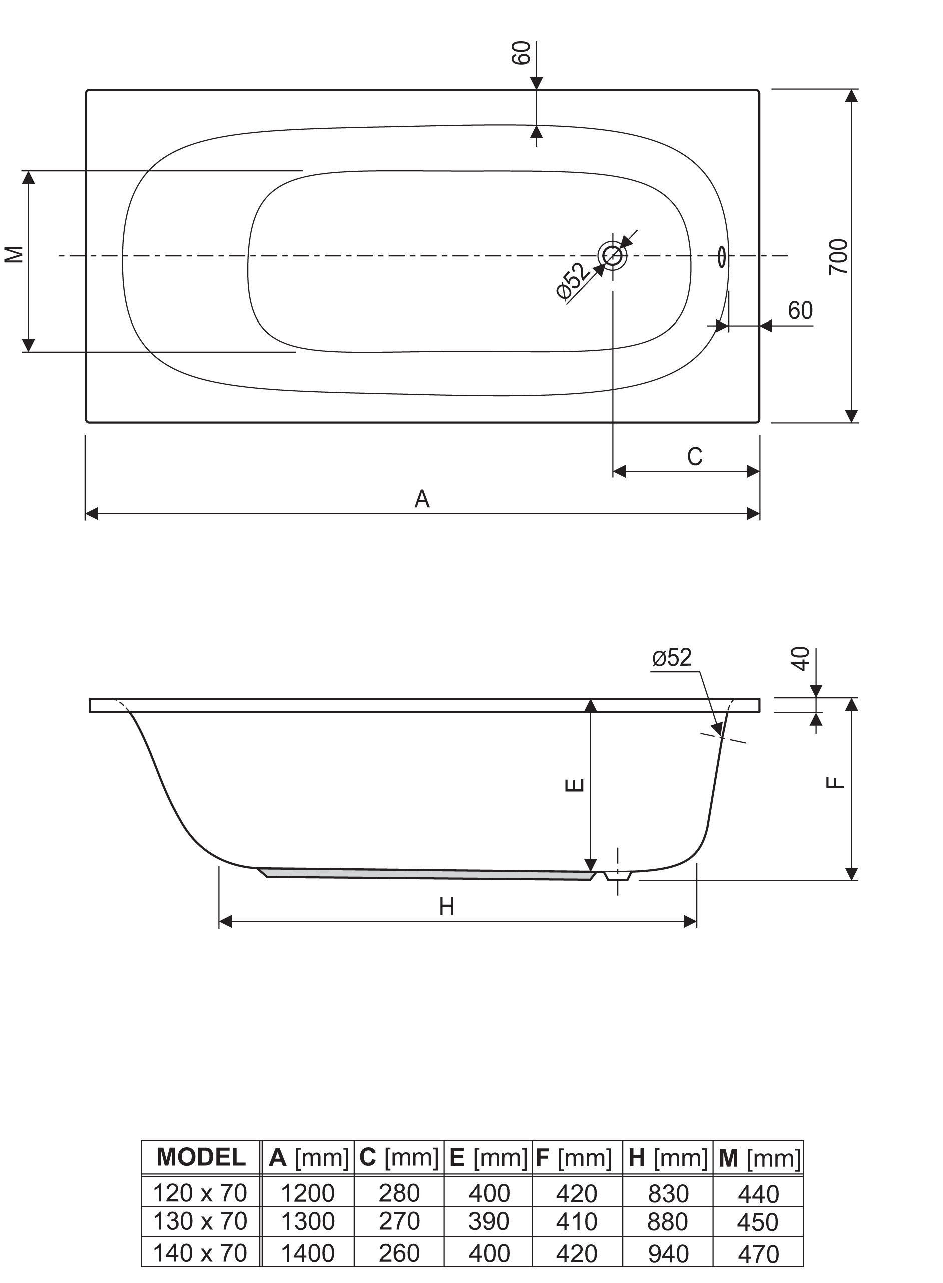 - 140 x 70 cm VOL: 140 ltr