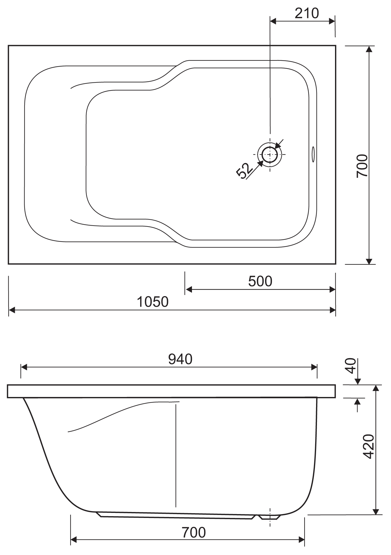 This bathtub is ideal for smaller bathrooms due to its reduced dimensions.