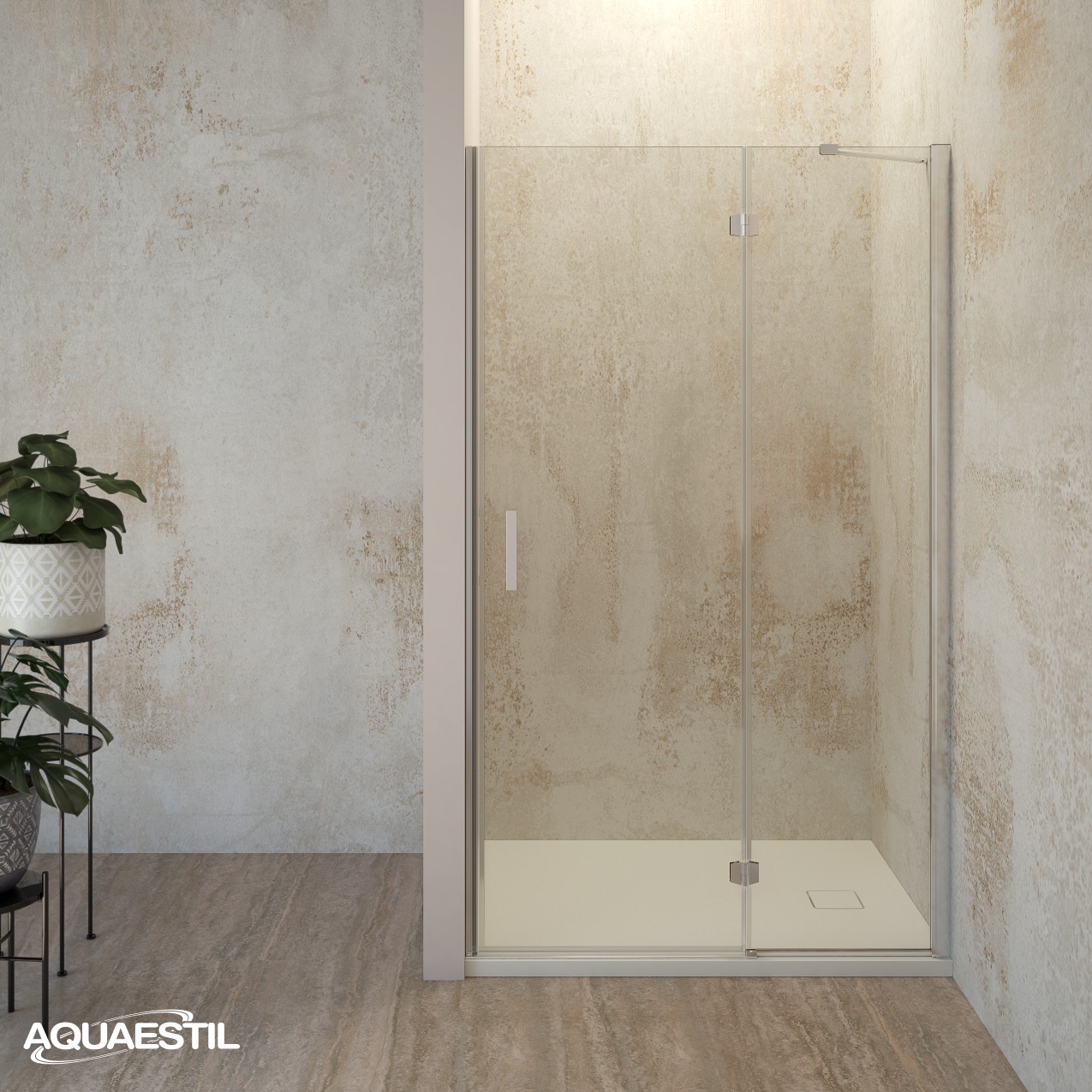 Aurora D for niche is a modern glass shower screen with a hinged door and is intended for showering spaces surounded by three walls. This shower screen consists of a shorter fixed wall and an outwards-opening hinged screen. This shower screen is equipped with 6 mm tempered glass, quality magnetic seals and additional profile at the junction of the door and shower tray.