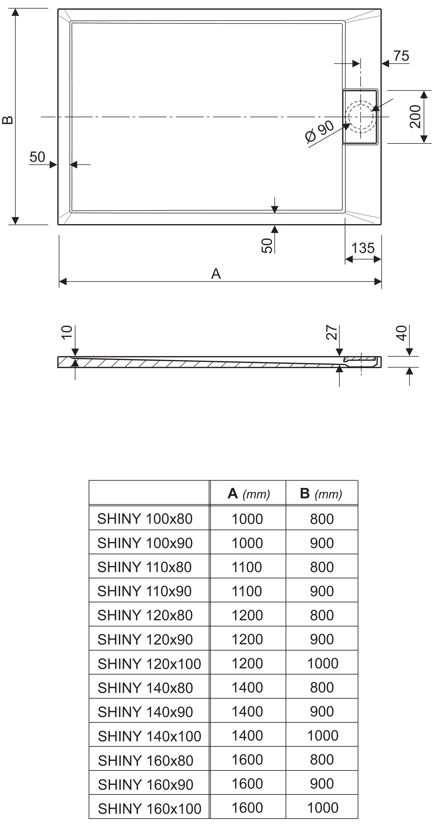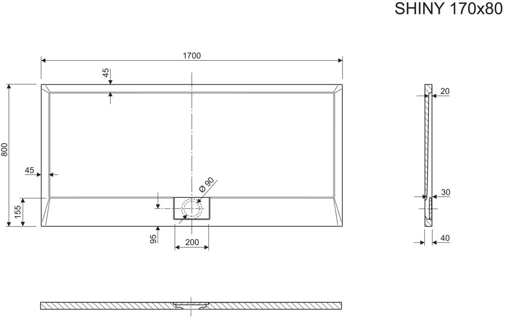 The shower tray Shiny’s distinguishing features are its specially designed drain cover as well as modern and sharp lines. Shower trays made of cast marble are known for their maximum strength and perfect lines that can be achieved because of the advanced properties of this material. The surface of these shower trays is shiny and very easy to clean and maintain.