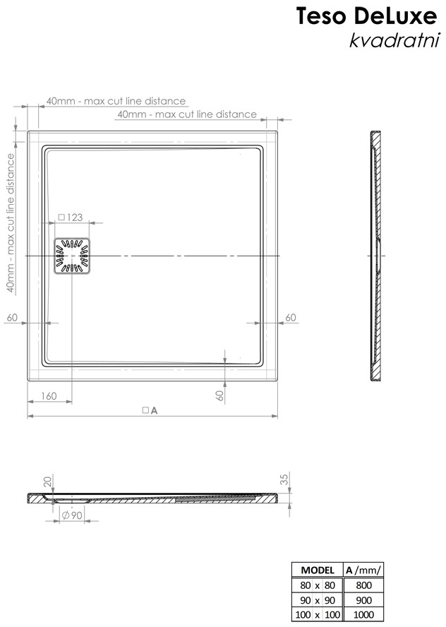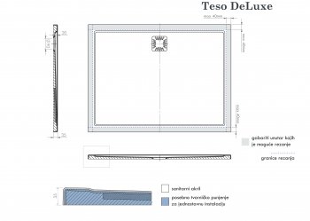 • Teso DeLuxe shower tray can be cut within certain dimensions. When ordering factory cutting, it is necessary to attach a sketch with marked cutting lines.