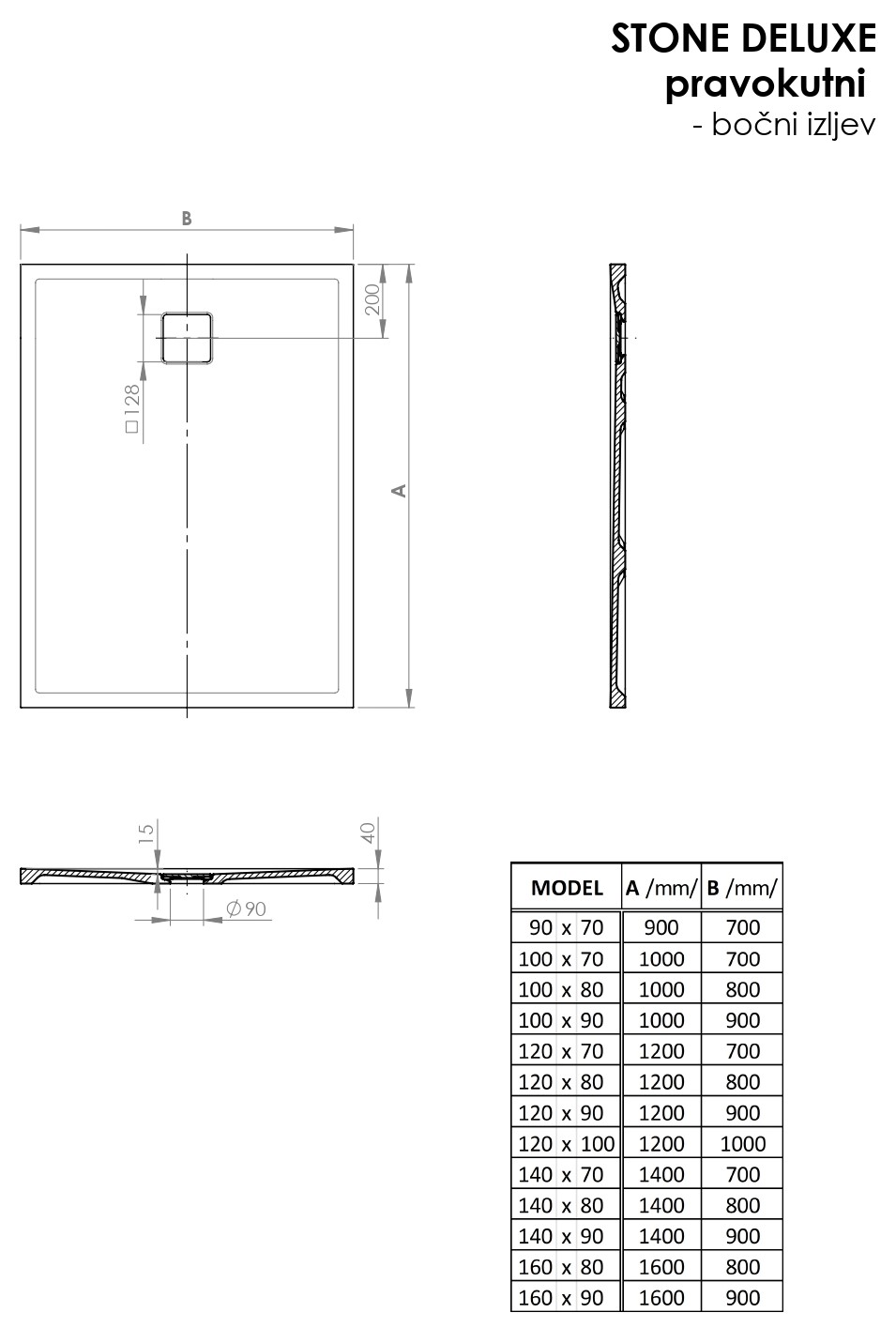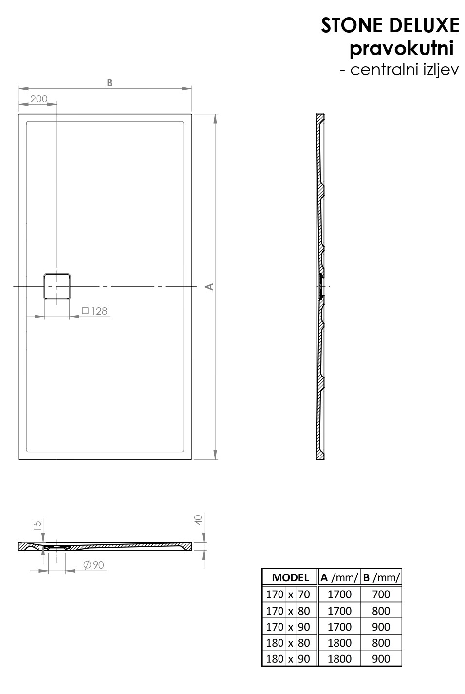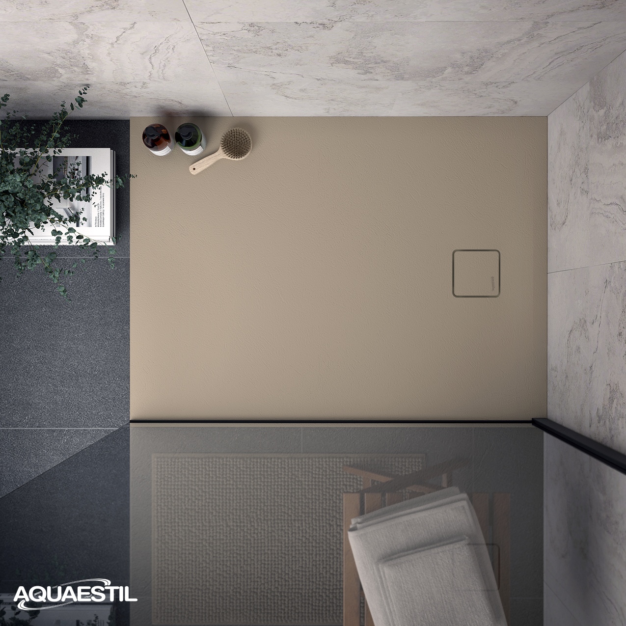A special advantage of Stone DeLuxe shower trays is the possibility of cutting to specific dimensions in order to adapt to configuration of the shower area. You can cut the shower tray independently according to the instructions or order a factory cutting with the mandatory presentation of a sketch, which must indicate the position of the siphon and the desired position of the cutting lines. The sides of the shower tray that are cut must be installed up to the wall. Stone DeLuxe shower tray factory cutting service can be requested from authorized Aquaestil sales representatives, where you also need to present a sketch for cutting Stone DeLuxe shower tray.