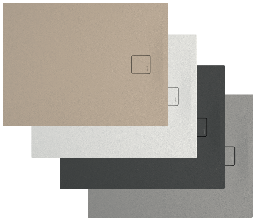 Stone DeLuxe mineral marble shower trays offer a solid and sophisticated surface that resembles concrete in white, beige, black or cement gray. An attractive siphon cover made in the same effect as the surface of the shower tray contributes to the characteristic appearance of Stone DeLuxe shower trays. A special advantage of Stone DeLuxe shower trays is the possibility of cutting to specific dimensions in order to adapt to configuration of the shower area.