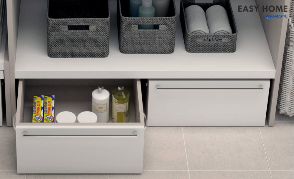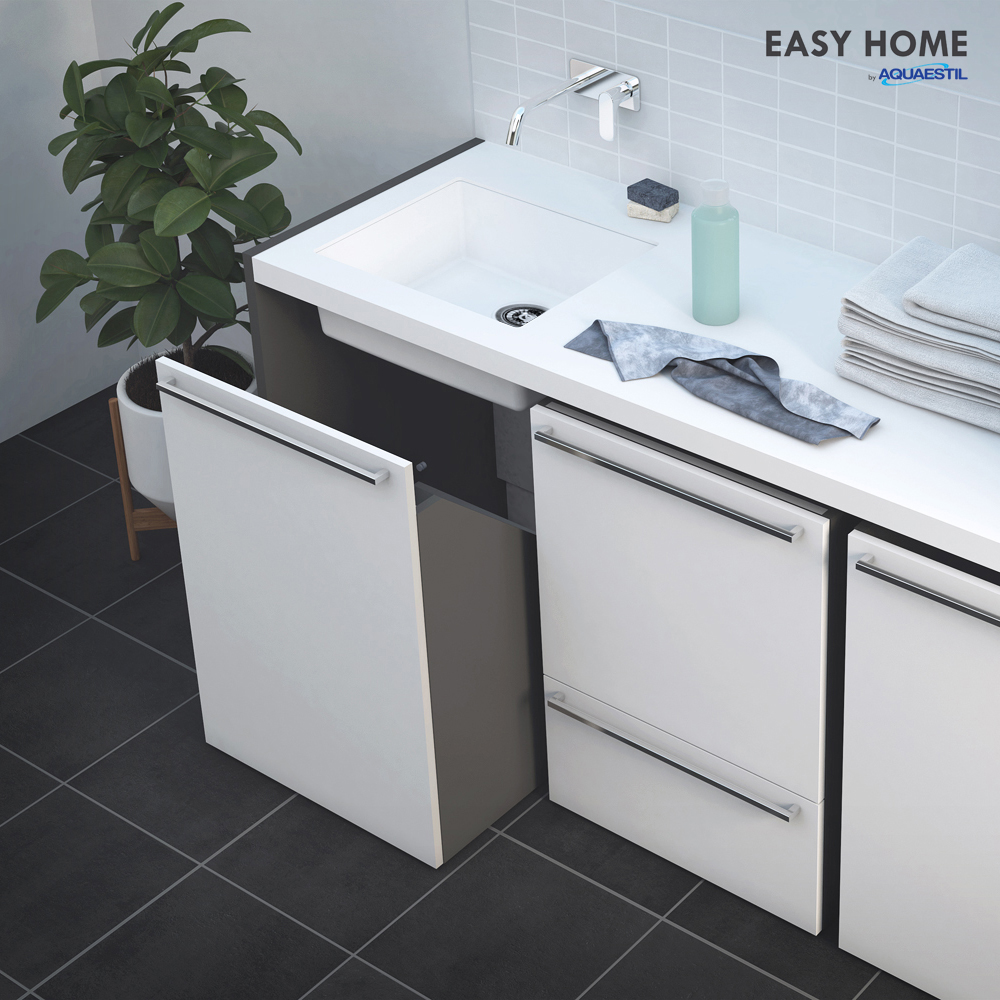 Kvalitetni pokretni ormarići EASY HOME nadopunjuju radne pultove i postolja za sušilicu/perilicu te im daju dodatnu funkcionalnost.