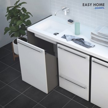 Svi elementi Easy Home linije naručuju se zasebno. Primjerice, moguće je naručiti samo postolje za sušilicu / perilicu rublja bez niskog pokretnog ormarića prikazanog na slikama. Pritom možete birati između tri atraktivne boje koje se odnose na korpus i bočne stranice elementa.