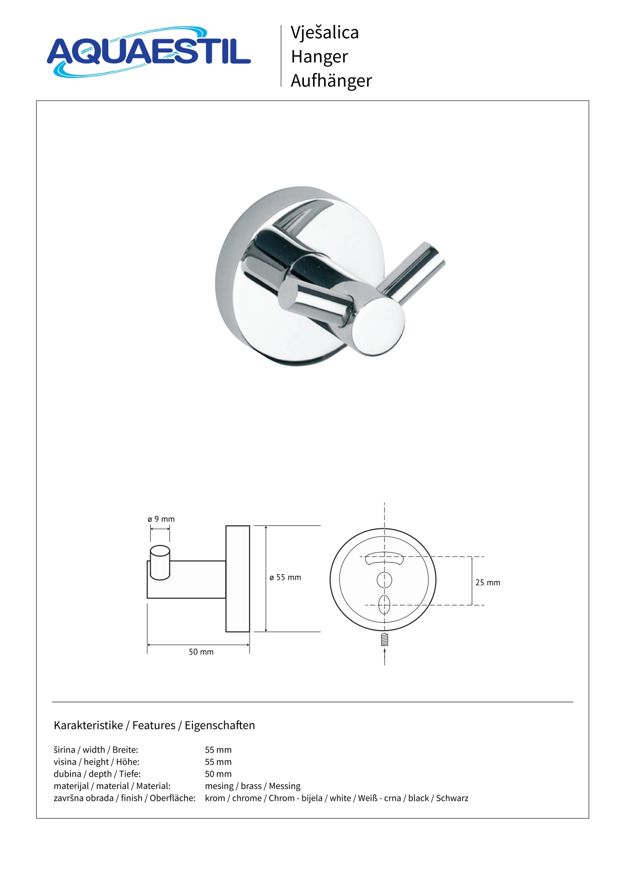 Mesingana vješalica u kromiranom, bijelom mat, ili crnom mat efektu.