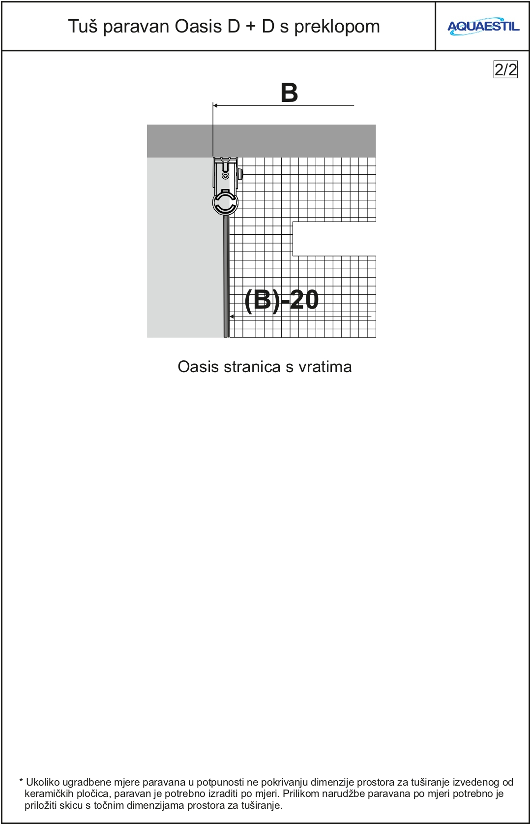 - Ukoliko se paravan postavlja na pločice, a ne na tuš kadu, uz narudžbu je potrebno dostaviti nacrt sa točnim dimenzijama prostora za tuširanje.
