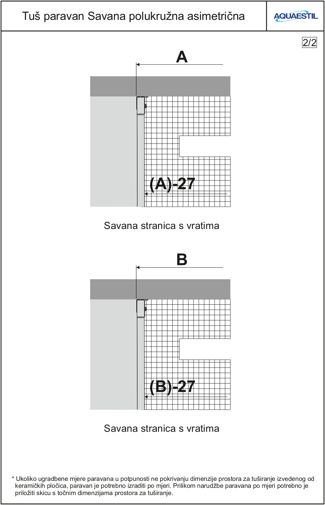 - Dimensioni su misura non sono disponibili per i box doccia semicircolari.