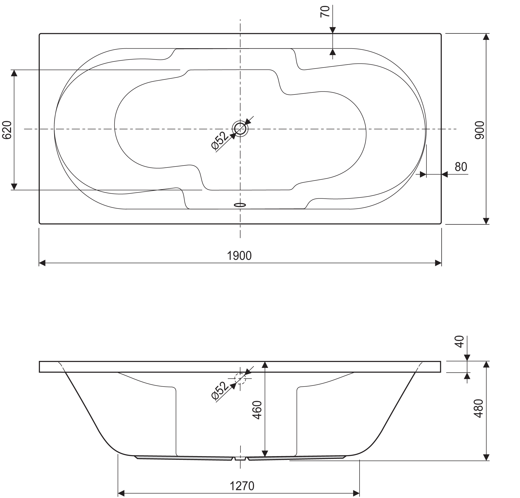 - kopalne kadi brez masažnega sistema se dobavijo brez prelivno-odtočne garniture