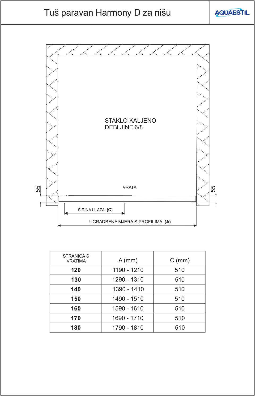 Ob naročilu paravana za vgradnjo na keramiko je potrebno priložiti preprosto skico z natančnimi merami prostora za tuširanje.