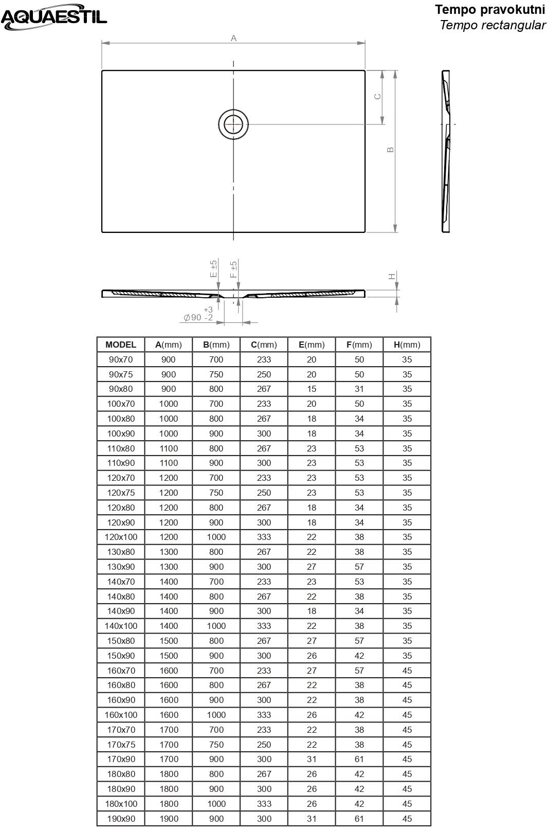 Tuš kad Tempo je na voljo v različnih dimenzijah in je zaradi svojega nizkega profila namenjena vgradnji v nivo tal. Ta tuš kad je idealna za ustvarjanje prostora za tuširanje brez ovir v kombinaciji z našimi steklenimi paravani.