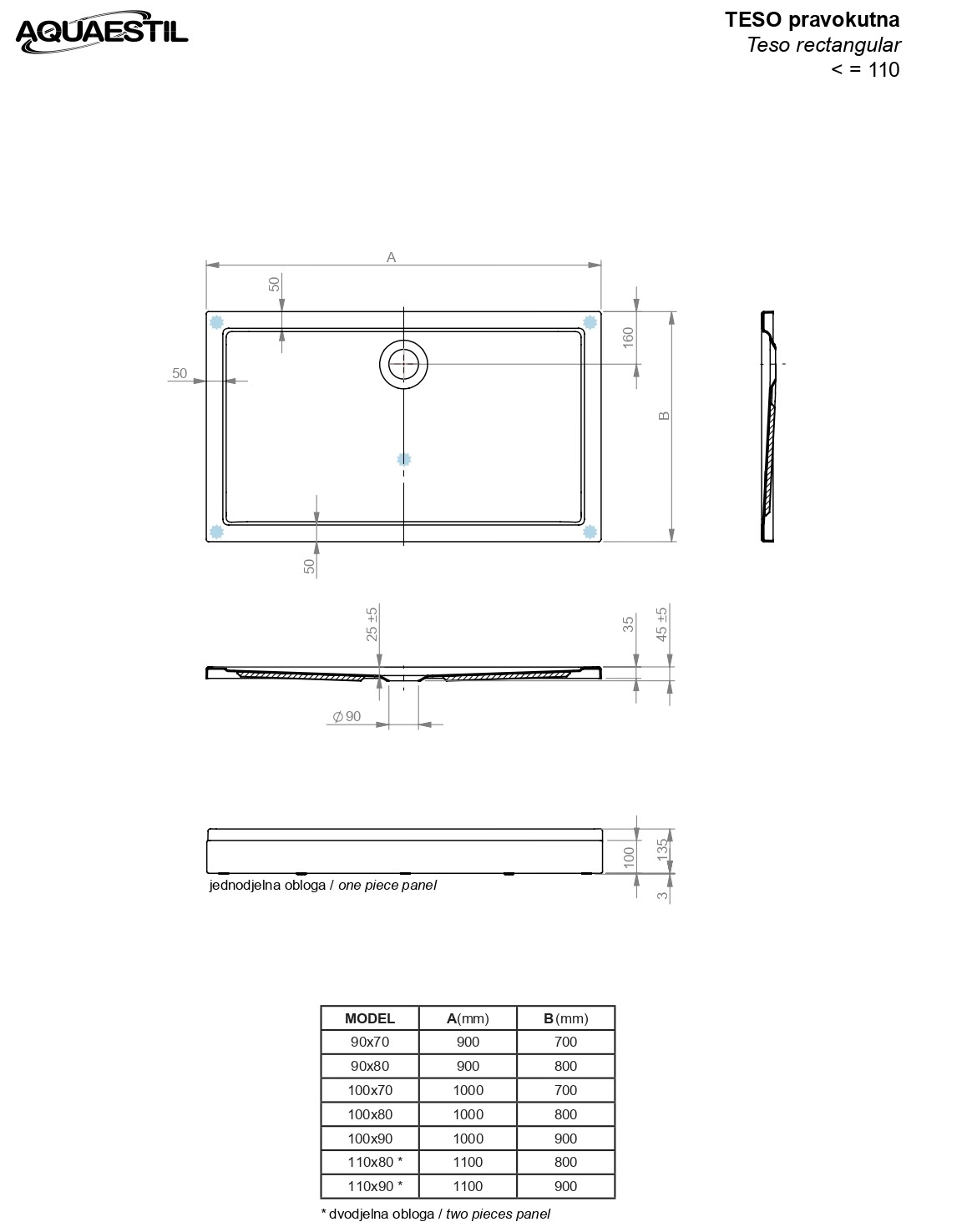 Posebni ukrepi za prilagajanje vašemu prostoru za tuširanje so mogoči z naprednimi značilnostmi linij tuš kad Stone, Stone DeLuxe, Tempo in Teso DeLuxe, ki omogočajo tovarniško ali samostojno rezanje in prilagajanje tudi najzahtevnejšim prostorskim konfiguracijam. Ob naročilu tovarniško razrezane tuš kadi pri prodajnem zastopniku Aquaestil je potrebno priložiti skico želenih dimenzij tuš kadi.
