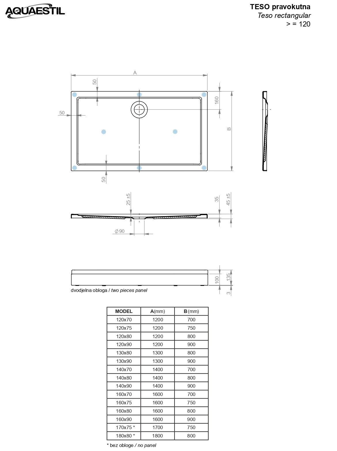 Tuš kadi iz litega marmorja nudijo močan občutek trdne površine in privlačen dizajn ostrih linij. Določene tuš kadi iz litega marmorja Aquaestil so lahko tovarniško ali samostojno razrezane znotraj določenih dimenzij.