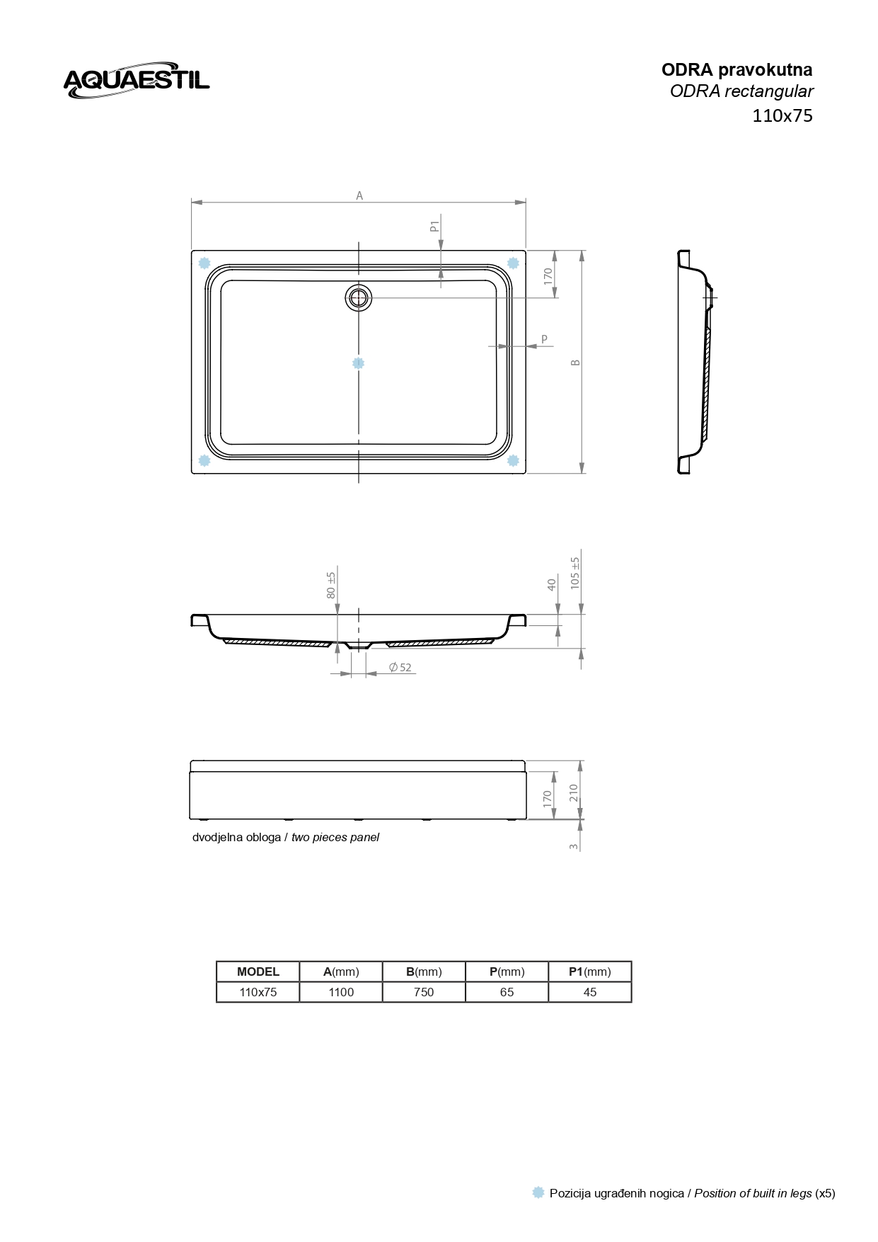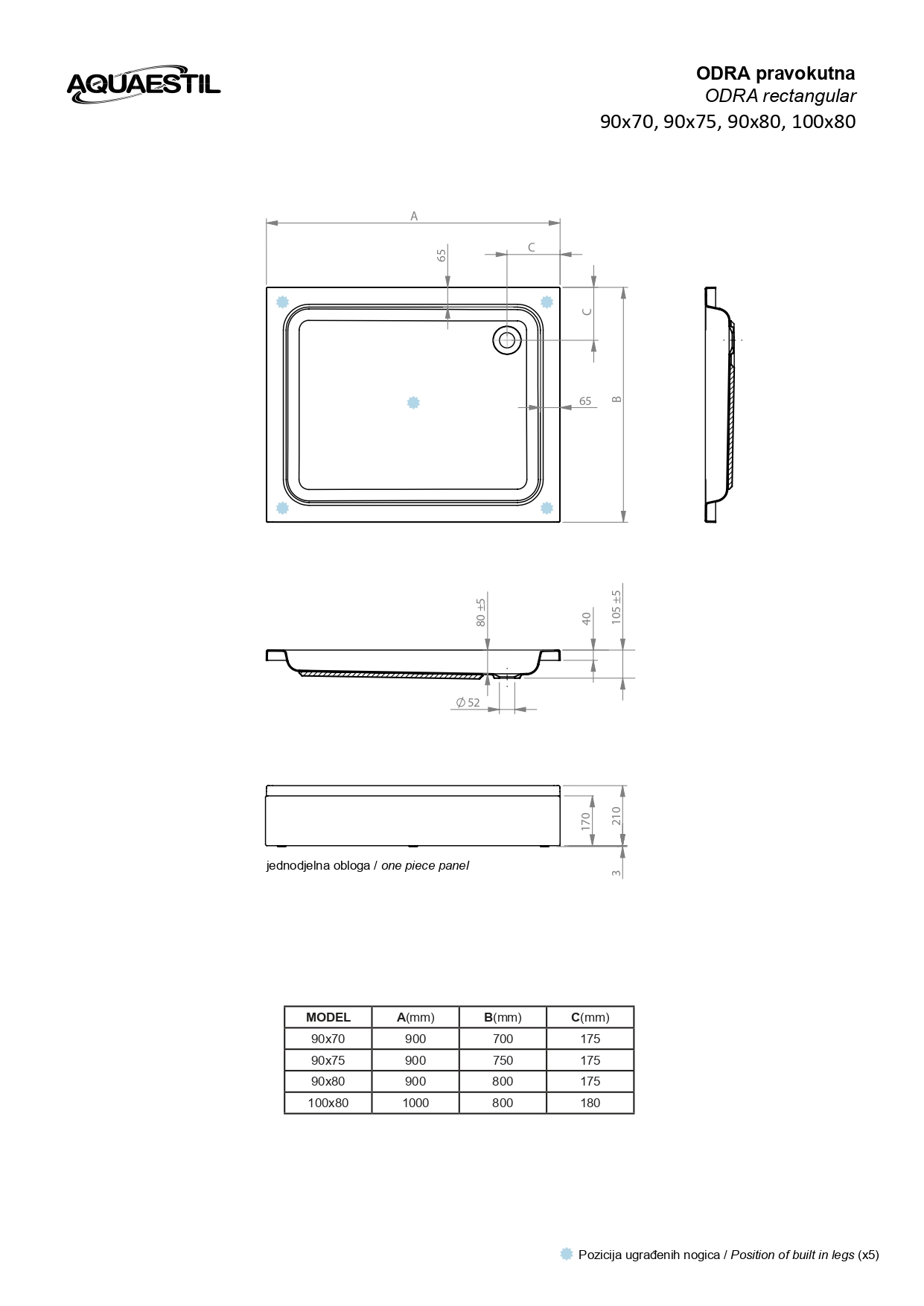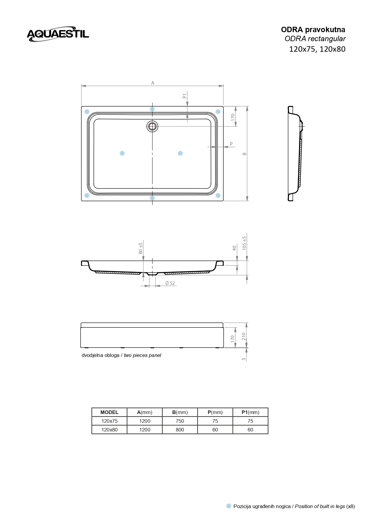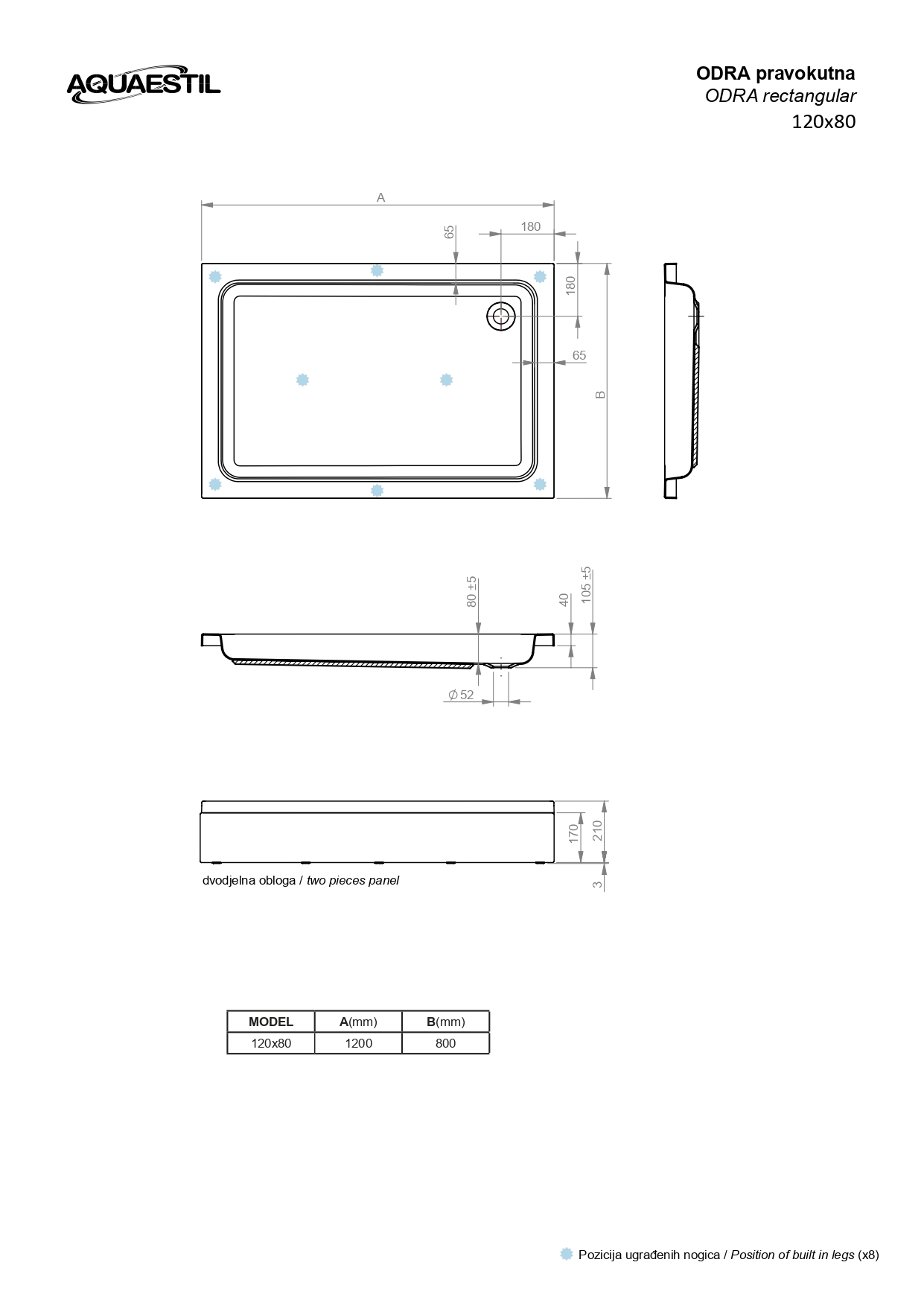 Odra je klasična tuš kad povečane globine in s standardno odprtino sifona. Omogoča kombiniranje z vsemi standardnimi modeli tuš paravanov. Na voljo je v veliko različnih dimanzijah.